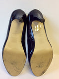 HB ESPANA DARK BLUE PATENT LEATHER PEEP TOE HEELS SIZE 4/37