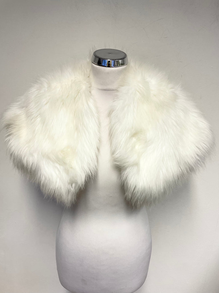 HELEN MOORE IVORY FAUX FUR CAP SLEEVED BOLERO SHRUG
