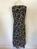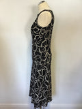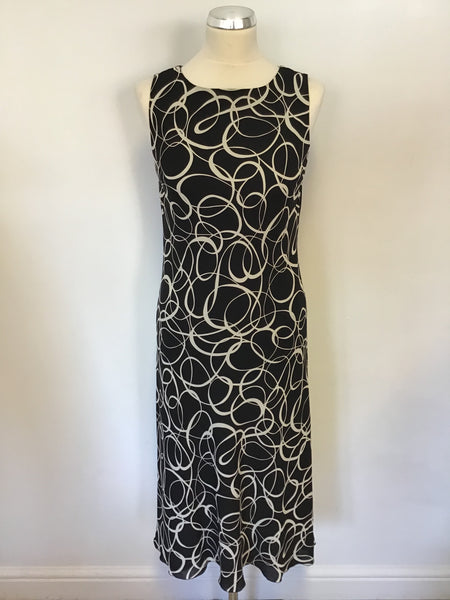 HOBBS BLACK & CREAM SWIRL SLEEVELESS CALF LENGTH DRESS SIZE 12