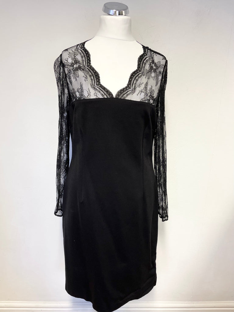 HOBBS BLACK LACE TOP LONG SLEEVE STRETCH JERSEY PENCIL DRESS