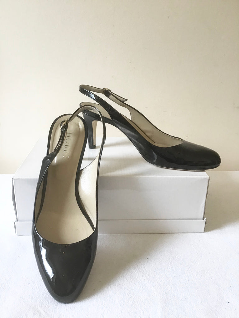 HOBBS BLACK PATENT LEATHER SLINGBACK HEELS