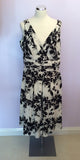 Hobbs Black & White Floral Print Silk Dress Size 16