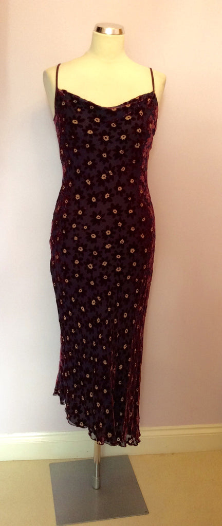 Hobbs Burgundy Floral Silk Blend Dress Size 8