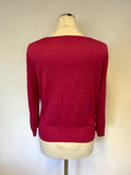 HOBBS DEEP PINK SILK,COTTON & CASHMERE 3/4 SLEEVE CARDIGAN SIZE 16