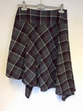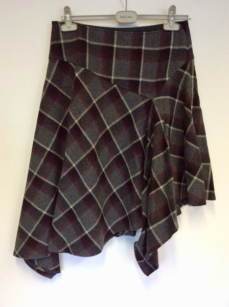 HOBBS GREY,BURGUNDY & BLACK CHECK ASYMETRIC HEM WOOL SKIRT SIZE 12