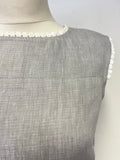 HOBBS GREY LINEN & WHITE TRIM SLEEVELESS SHEATH DRESS SIZE 10