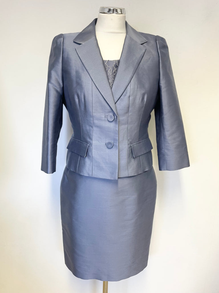 HOBBS INVITATION BLUE LACE TOP PENCIL DRESS & FITTED JACKET SUIT
