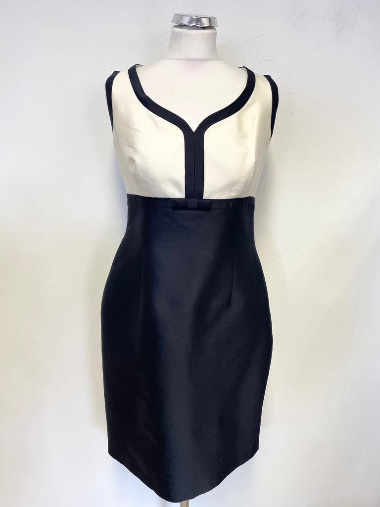 HOBBS INVITATION NAVY BLUE & IVORY SLEEVELESS PENCIL DRESS