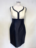 HOBBS INVITATION NAVY BLUE & IVORY SLEEVELESS PENCIL DRESS SIZE 12