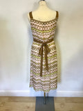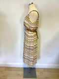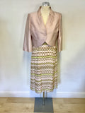 HOBBS INVITATION PINK,WHITE,LIME & BROWN SILK PRINT DRESS & PINK JACKET SIZE 12