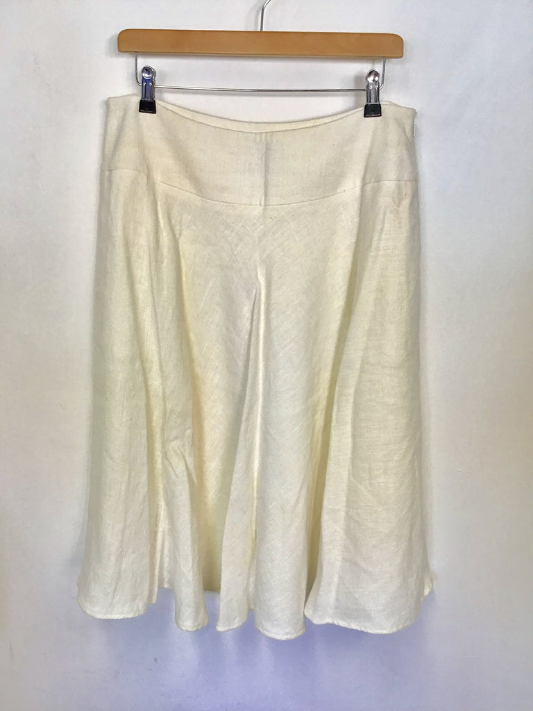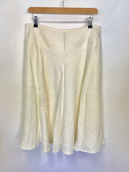 HOBBS IVORY LINEN FINEST ITALIAN CLOTH FULLER KNEE LENGTH SKIRT SIZE 14