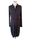 HOBBS NAVY BLUE COLLARED BUTTON THROUGH LONG SLEEVE JERSEY DRESS SIZE 14