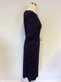HOBBS NAVY BLUE & PINK FLORAL PRINT TIE WAIST STRETCH JERSEY DRESS SIZE 10