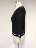 HOBBS NAVY BLUE & WHITE TRIM FINE KNIT JUMPER SIZE 12