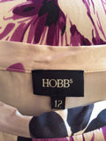 Hobbs Oyster Beige & Purple Floral Print Silk Skirt Size 12