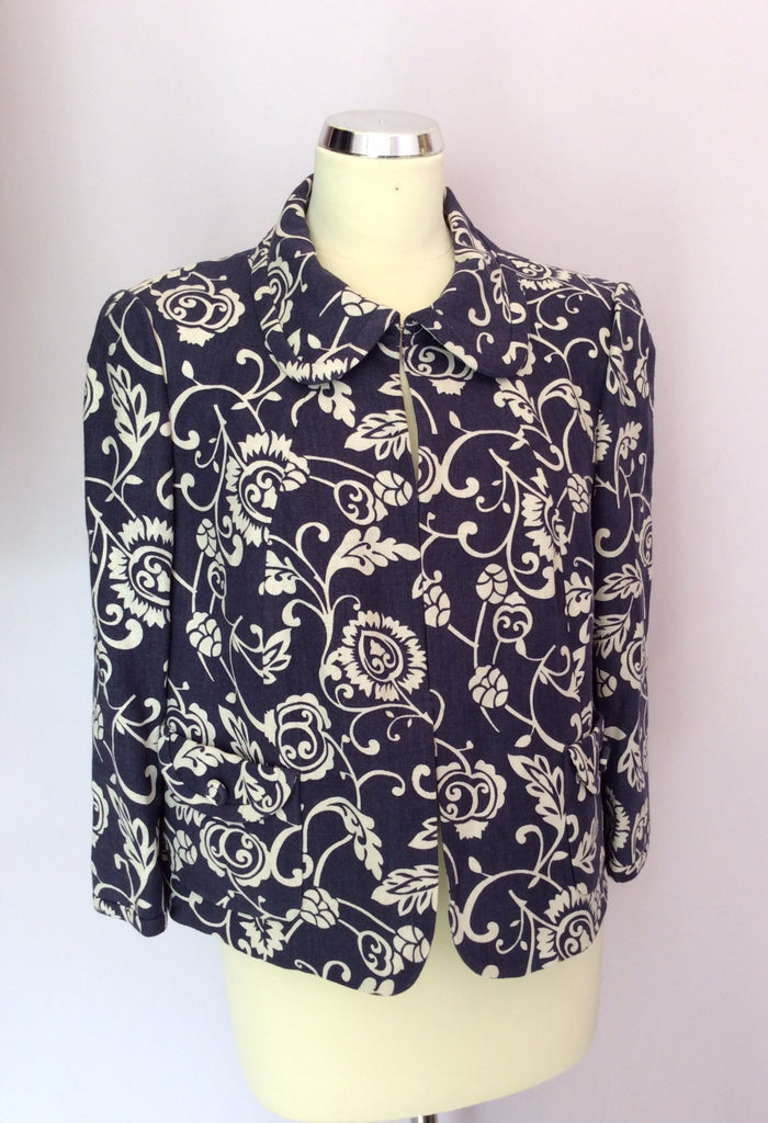 Hobbs Purple & Ivory Linen Print Jacket Size 14