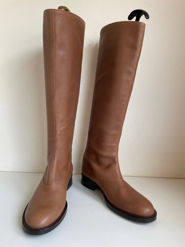 HOBBS TAN LEATHER FLAT BOOTS