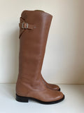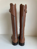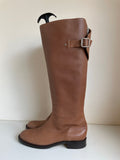HOBBS TAN LEATHER REAR ZIP BUCKLE TRIM FLAT BOOTS SIZE 5/38
