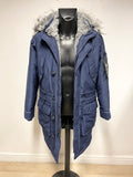 HOLLISTER NAVY BLUE DUCK DOWN & FEATHER FILLED HOODED WARM JACKET SIZE XS