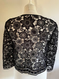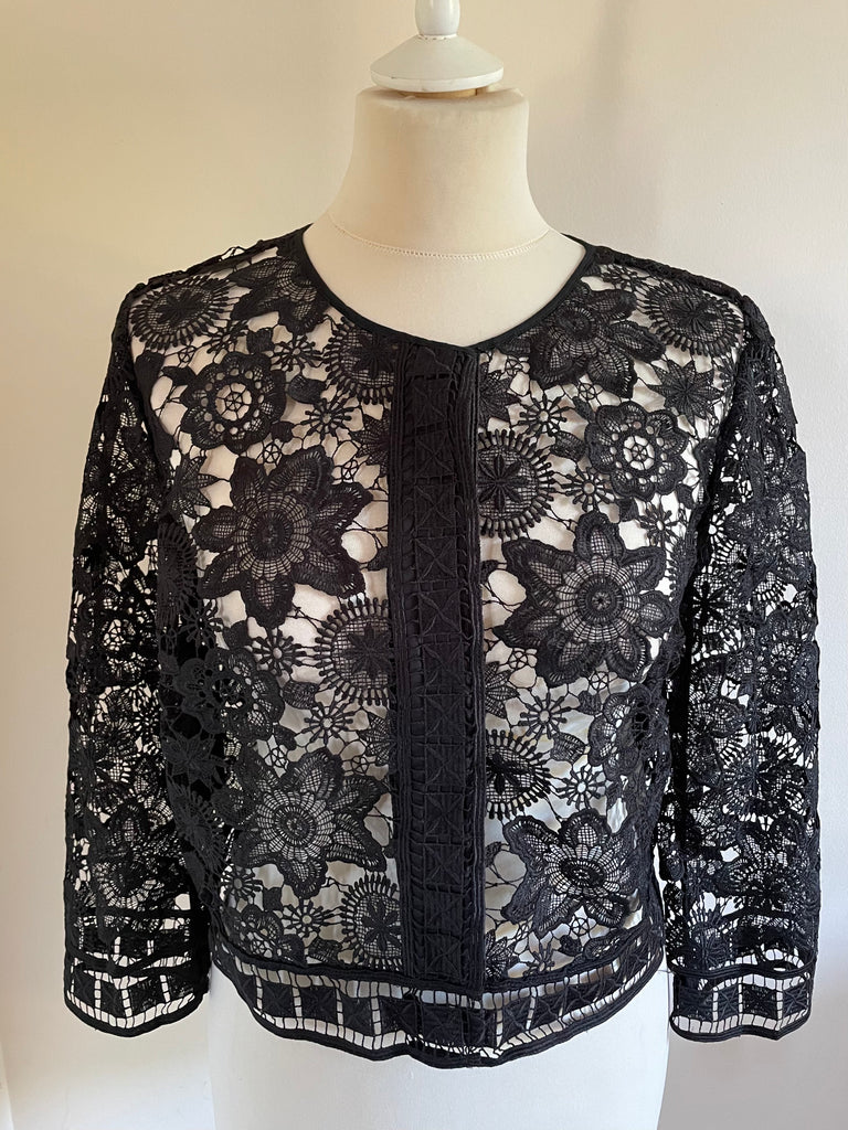 HOSS BLACK LACE PRESS STUD FASTEN 3/4 SLEEVE TOP SIZE 40 UK 12