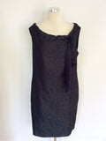 HUGO BOSS BLACK EMBOSSED PRINT SILK BLEND SHIFT DRESS SIZE 14