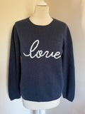 HUSH NAVY BLUE ‘LOVE’ EMBROIDERED MERINO WOOL BLEND JUMPER SIZE M