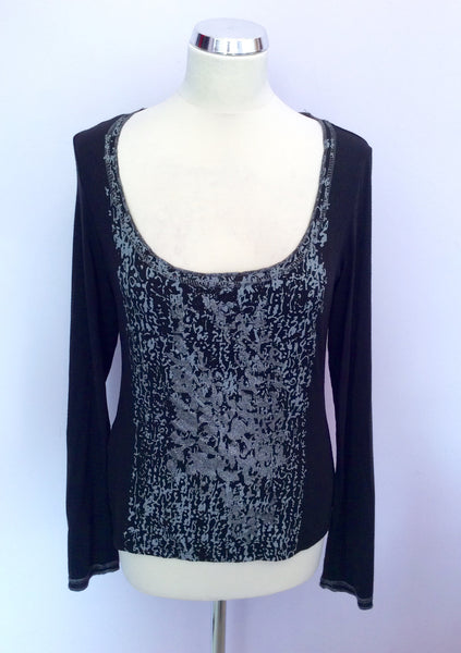 Isabel De Pedro Black With Silver & Grey Print Long Sleeve Top Size 14