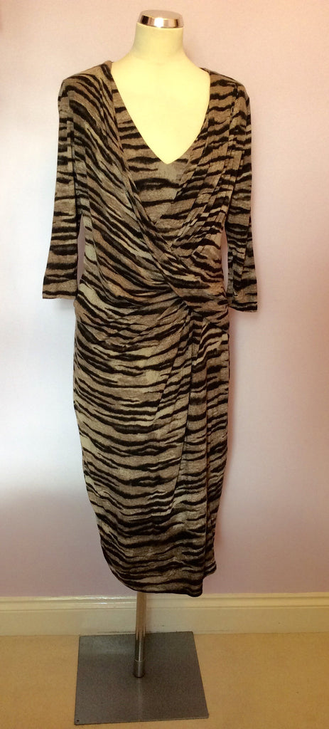 Isabel De Pedro Brown Print Wrap Style Dress Size 16