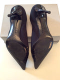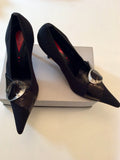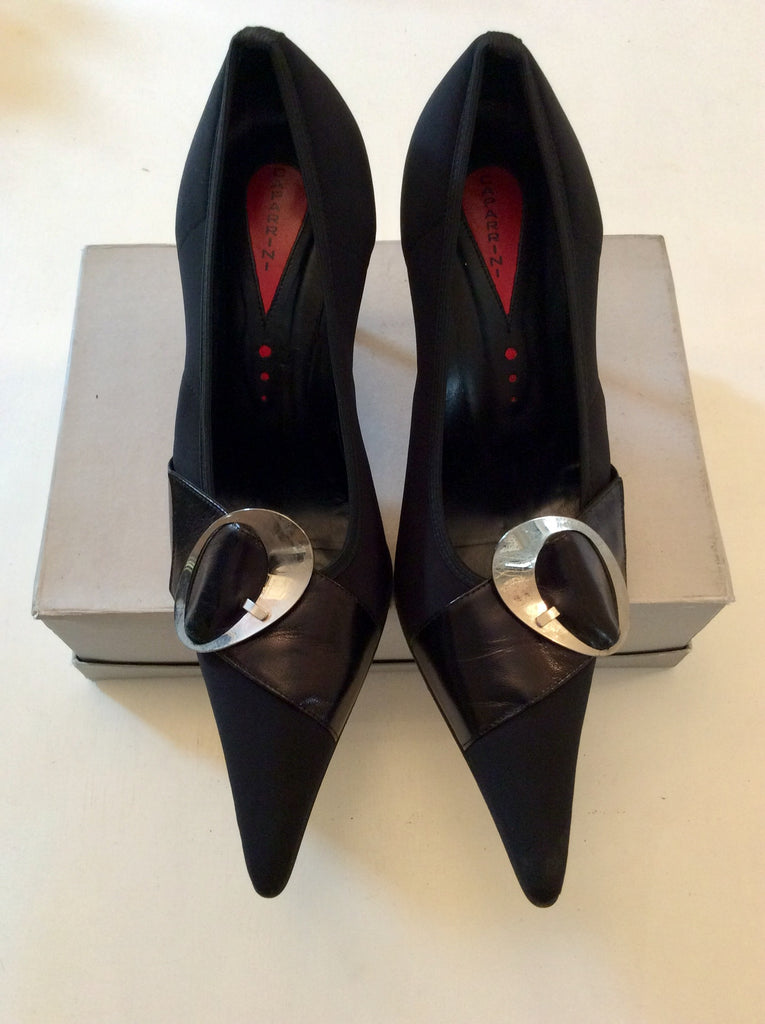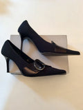 ITALIAN CAPARRINI BLACK TEXTILE & SILVER BUCKLE LEATHER TRIM HEELS SIZE 8/41