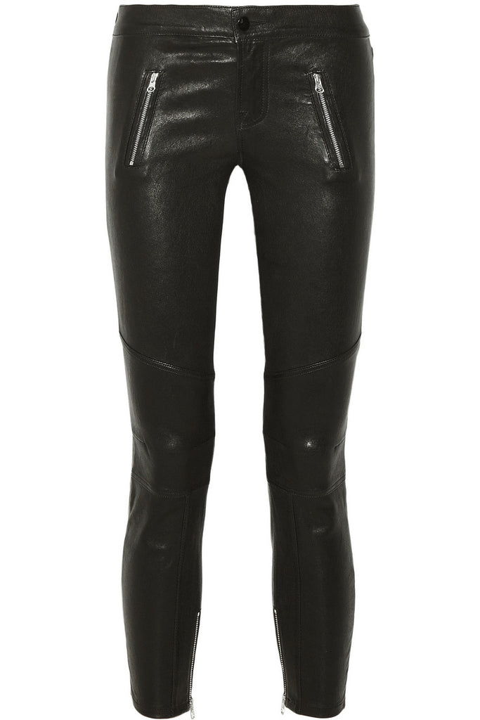 J BRAND JULIA BIKER BLACK LEATHER CROP SKINNY PANTS