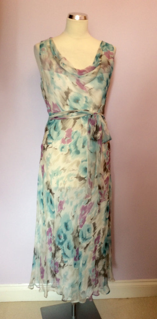 J Taylor Pink, Grey, Turquoise & White Print Silk Dress Size 14