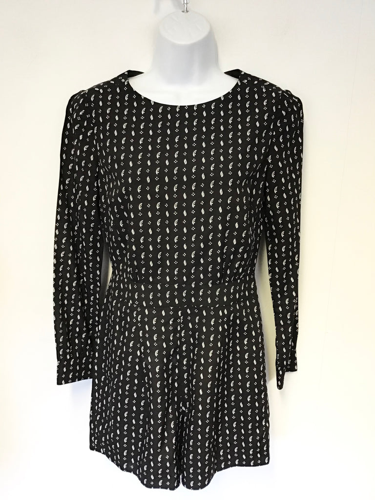 JACK WILLS BLACK & WHITE PRINT LONG SLEEVE PLAYSUIT SIZE 8