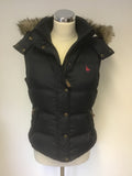 JACK WILLS DARK BLUE DUCK DOWN & FEATHER FILLED HOODED GILET/ BODY WARMER SIZE 10