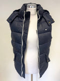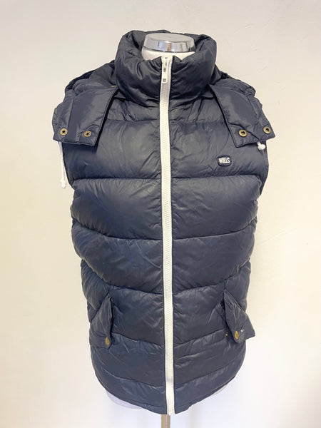 JACK WILLS NAVY BLUE QUILTED DUCK DOWN PADDEDDETACHABLE HOOD ZIP FRONT BODYWARMER