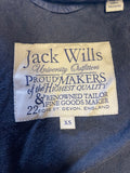 JACK WILLS NAVY BLUE QUILTED DUCK DOWN PADDED DETACHABLE HOOD ZIP FRONT BODYWARMER SIZE XS