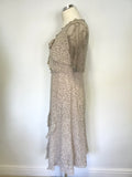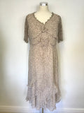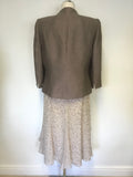 JACQUES VERT BEIGE & BROWN SPOT SHORT SLEEVE DRESS & BROWN JACKET SIZE 12