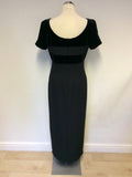 JACQUES VERT BLACK CREPE & VELVET LONG EVENING DRESS SIZE 12
