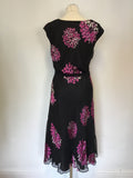 JACQUES VERT BLACK & PINK FLORAL PRINT SILK BLEND SPECIAL OCCASION DRESS SIZE 10