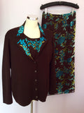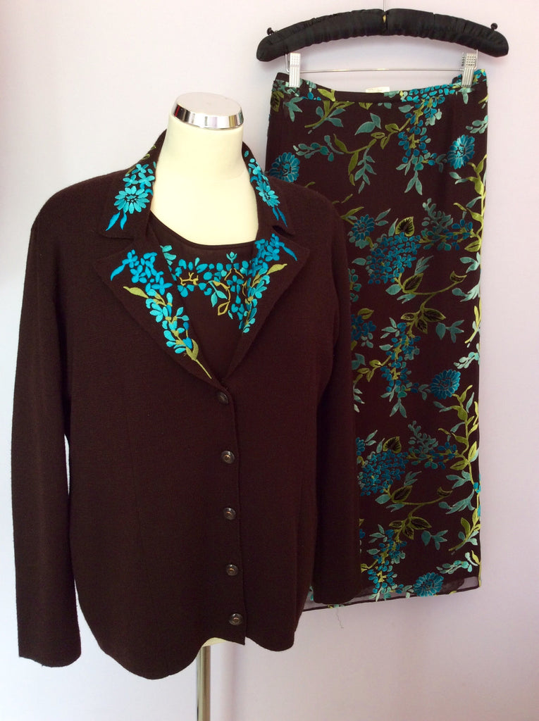 Jacques Vert Brown Embroidered Top, Long Skirt & Cardigan Size 22