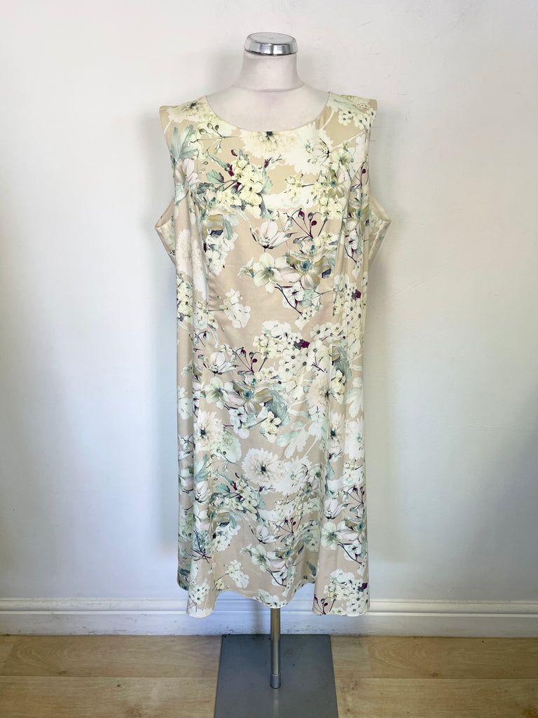 JACQUES VERT CREAM FLORAL PRINT SLEEVELESS A-LINE DRESS SIZE 20