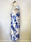 JACQUES VERT BLUE & WHITE FLORAL PRINT CAP SLEEVE PENCIL DRESS SIZE 10