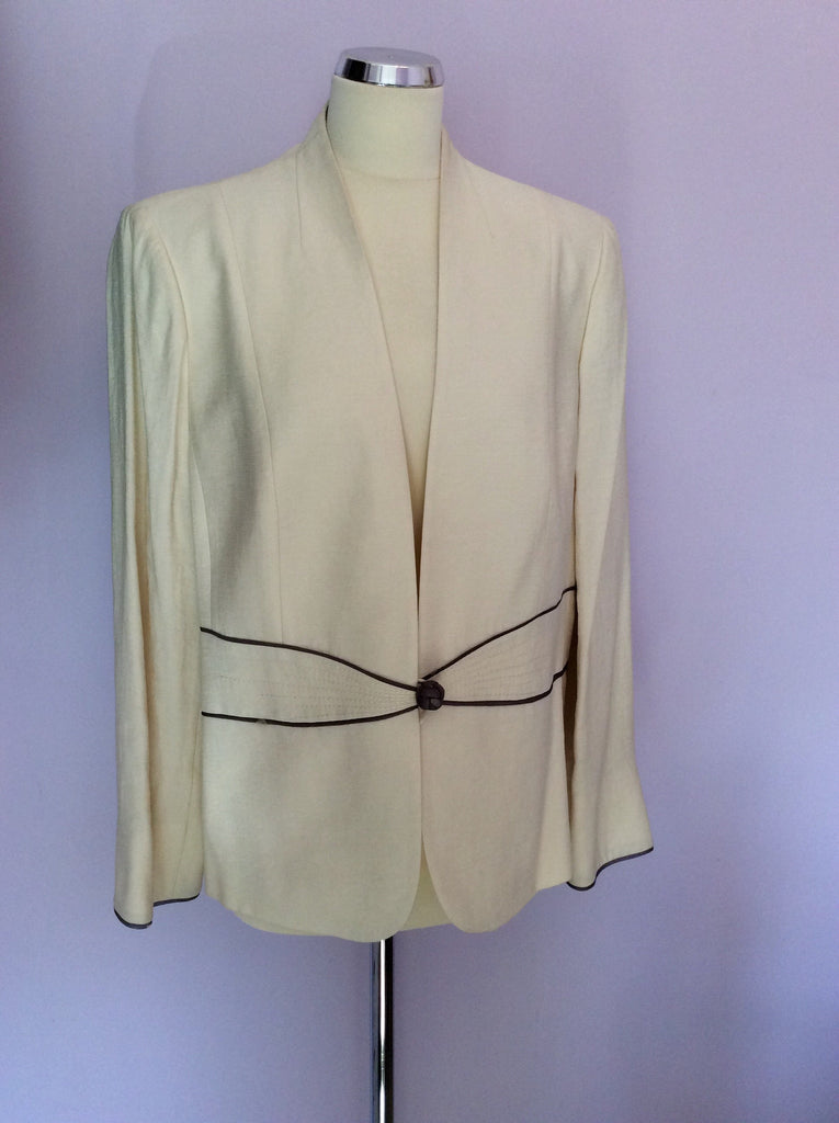 Jacques Vert Ivory & Grey Trim Jacket Size 20