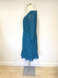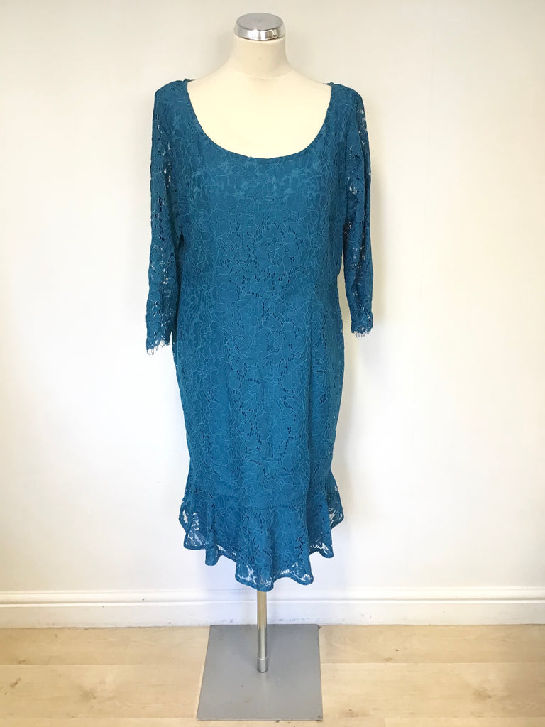 JACQUES VERT TURQOUISE LACE 3/4/SLEEVE SPECIAL OCCASION DRESS SIZE 18