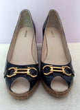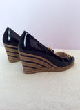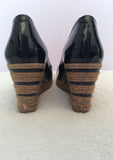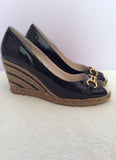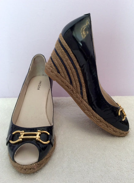 Jaeger Black Patent Leather Peeptoe Wedge Heels Size 6/39