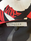 JAEGER BLACK,RED & WHITE FLORAL PRINT SILK SPECIAL OCCASION DRESS SIZE 16