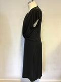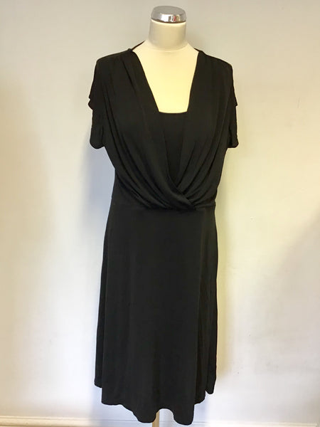 JAEGER BLACK WRAP ACROSS TOP CAP SLEEVE DRESS SIZE 14