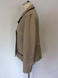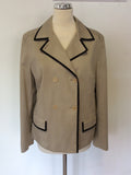 JAEGER FAWN & BLACK EDGE TRIM COTTON JACKET SIZE 16