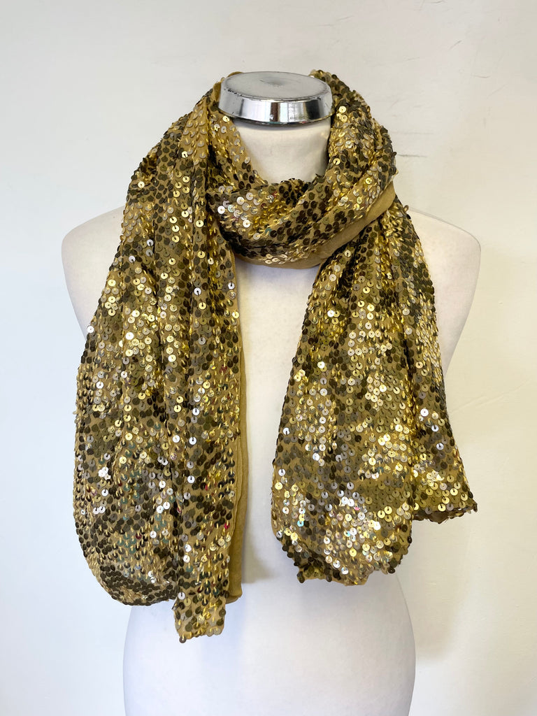 JAEGER GOLD SEQUINNED 100% SILK SCARF/SHAWL