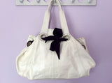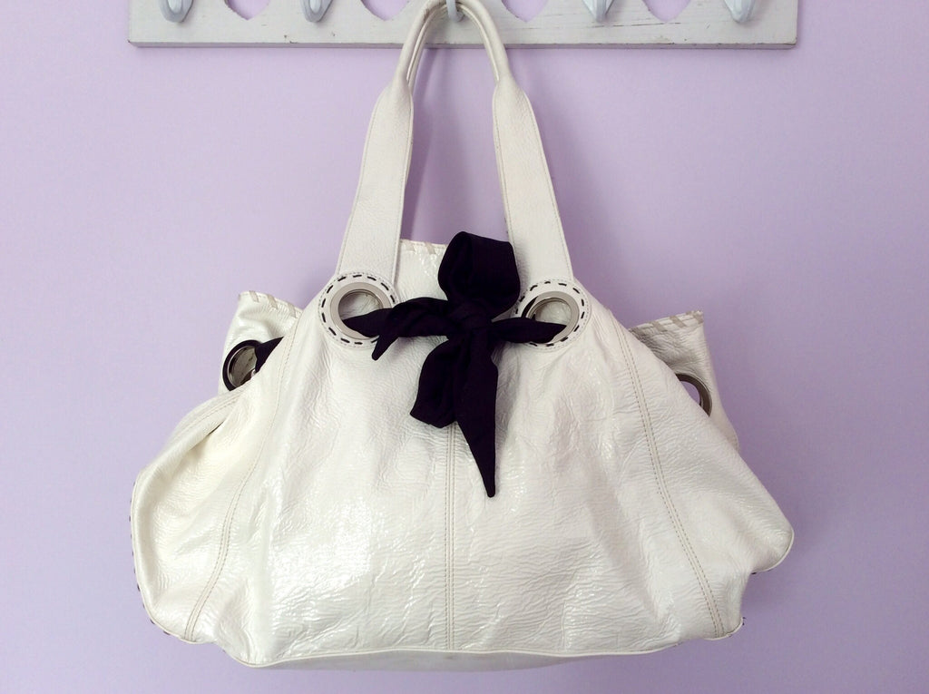 Jaeger Large White Patent With Black Tie Shoulder Bag