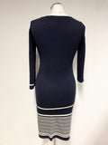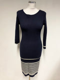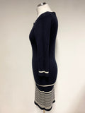 JAEGER NAVY BLUE WITH IVORY STRIPE TRIM KNIT DRESS SIZE XS